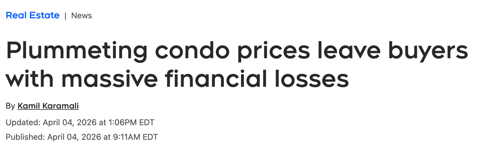 This is the resale market adjusting in real time, every month they tick lower. That’s a death sentence for a developer sitting on a project that’s only 70% sold out.