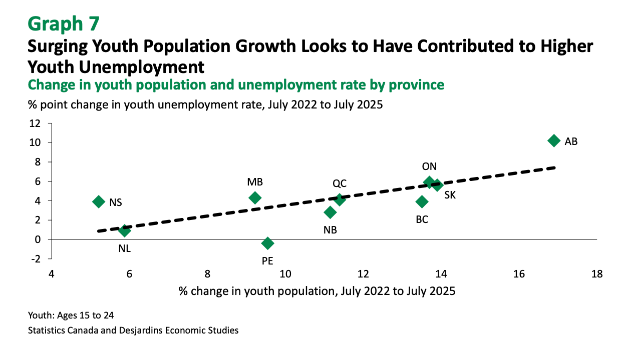 In Toronto, the unemployment rate has now sitting north of 9%. The highest level in 15 years. Things are particularly dire for our Canadian youth, with unemployment sitting at 14%, the highest levels since 2010. According to Desjardins, “the youth unemployment rate has risen much faster than the unemployment rate for older age cohorts and is now at a level more commonly seen during a recession.”