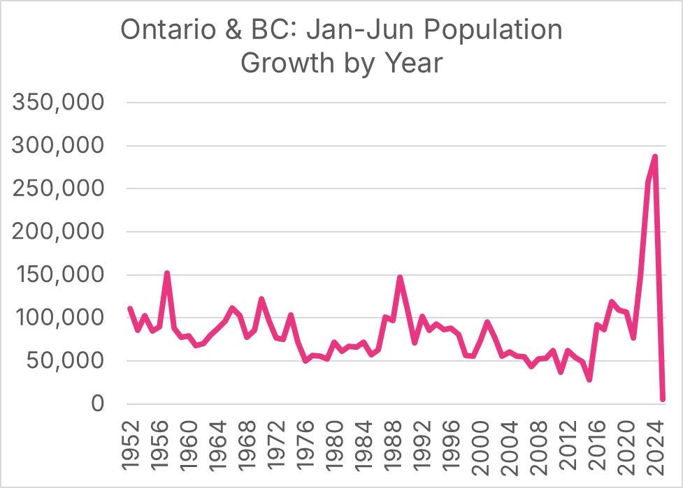 Population growth is already running at record lows through the first half of this year in BC & Ontario. Nature is healing.