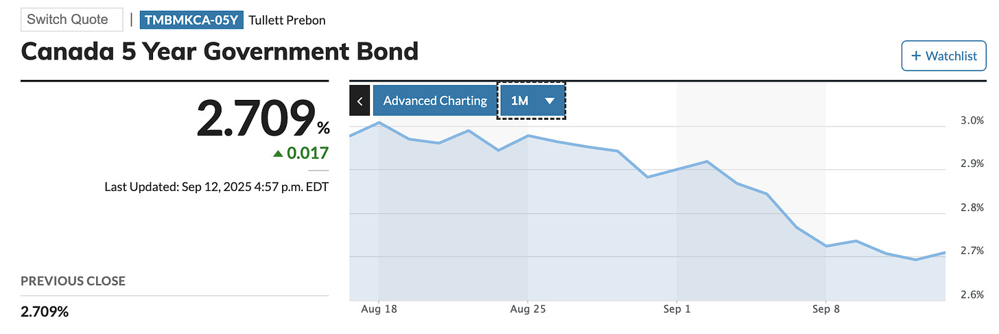 We’re also seeing movement on the fixed rate side with bond yields sliding lower in recent weeks. The Canada 5 year bond yield which closely tracks 5 year mortgage rate is now down 30bps over the past month. Mortgage rates should slide under 4% across the curve in coming weeks. Homeowners rejoice?