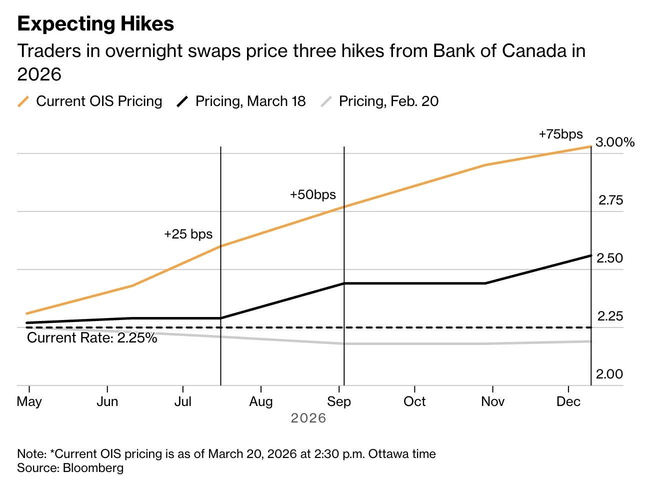 If traders are right, the Bank of Canada will opt to fight inflation spurred by an energy crisis from a war in the middle east, despite domestic demand collapsing. Colour me skeptical. Rate hikes will not unlock the straight of Hormuz nor will they pump a single extra barrel of oil out of the ground.