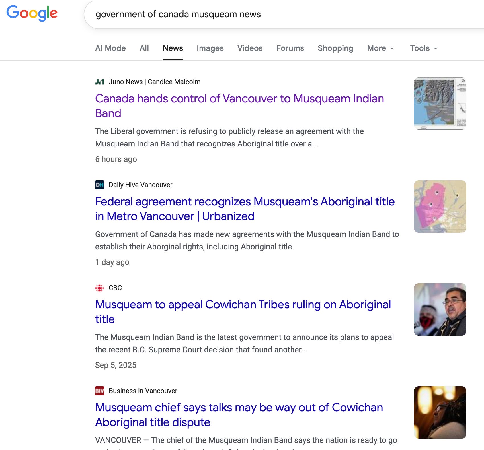 In simpler terms, it means the federal government is formally acknowledging that Musqueam holds Aboriginal rights — including Aboriginal title on land — within its traditional territory and is committing to work out, step by step, how those rights will be put into practice. The agreement creates a structured framework for gradually implementing Musqueam’s authority in decision-making over much of the Lower Mainland’s lands and waters.