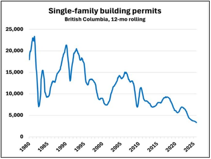 Thus, we find it rather ironic that the BC government is still forecasting rising housing starts this year and next.