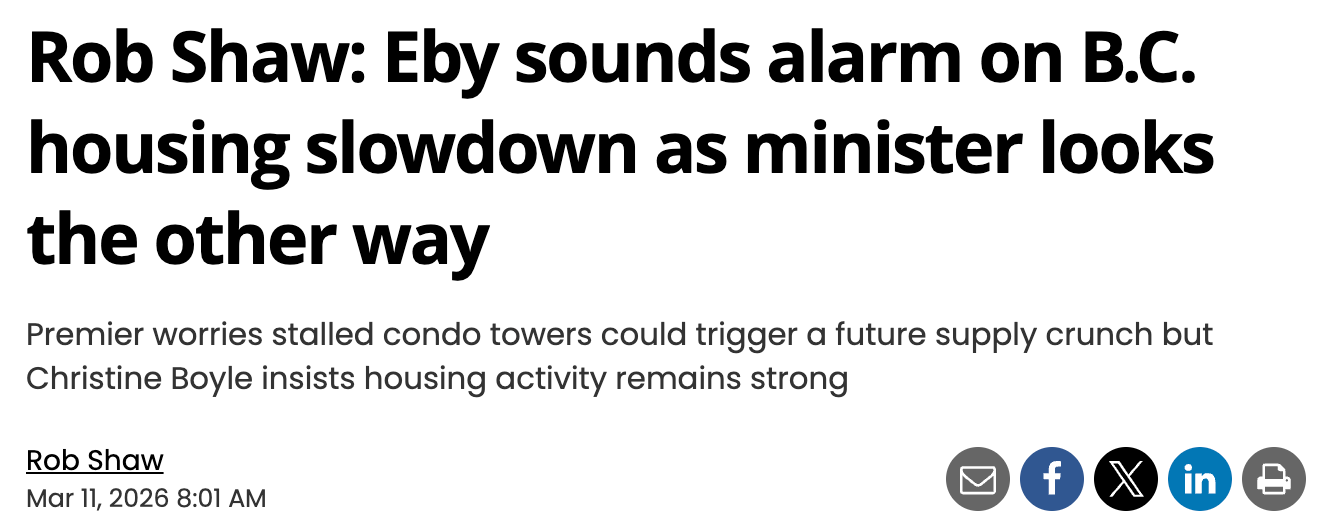 At this point, the housing downturn is well documented, and so we couldn’t help but notice the willful blindness from BC’s housing minister, Christine Boyle.