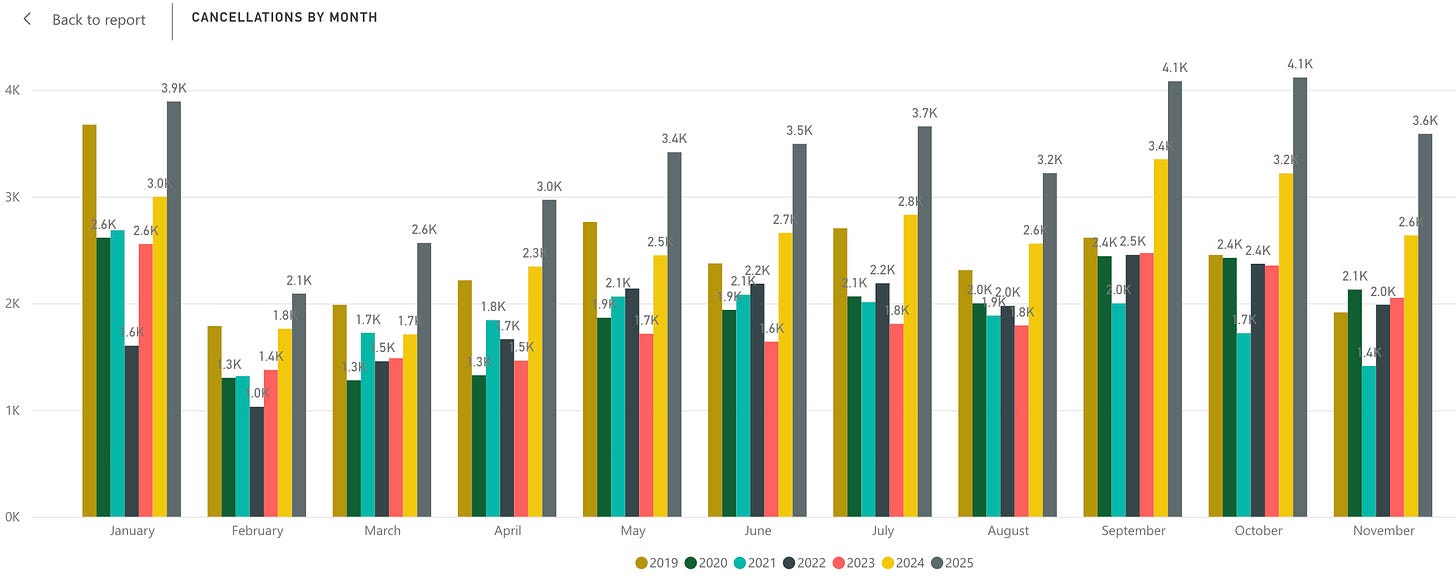 Check out listing cancellations this year across Greater Vancouver. They are nearly double what they’ve been over the past few years.