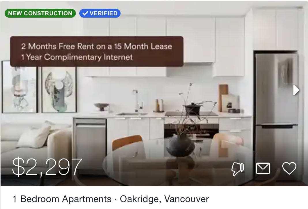 Landlords in Vancouver aren’t used to units sitting empty for several months and having to offer a month or two of free rent, plus internet!